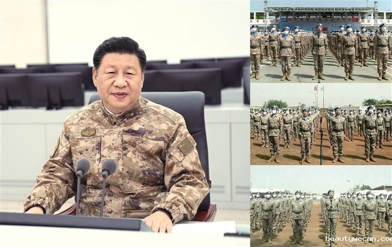 随后,习近平同中部战区海外维和分队进行视频通话。来自维和步兵营、工兵分队、医疗分队、直升机分队的同志们整齐列队,依次向习近平报告。习近平向他们,并向我军正在海外执行任务的全体官兵表示慰问。习近平强调,要忠实履行维和使命,为维护世界和平贡献更多中国力量,向世界展示中国军队良好形象。维和任务区环境复杂,要注意加强安全防范,搞好疫情防控。