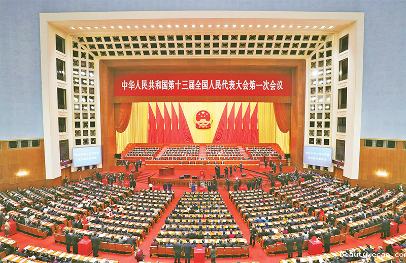 宪法是国家的根本法。坚持依法治国首先要坚持依宪治国,坚持依法执政首先要依宪执政。2018年3月11日,十三届全国人大一次会议在北京人民大会堂举行第三次全体会议,表决通过了《中华人民共和国宪法修正案》,图为表决现场。 新华社记者 王晔/摄