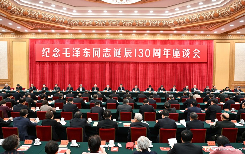 12月26日,中共中央在北京人民大会堂举行纪念毛泽东同志诞辰130周年座谈会。中共中央总书记、国家主席、中央军委主席习近平发表重要讲话。新华社记者 谢环驰 摄