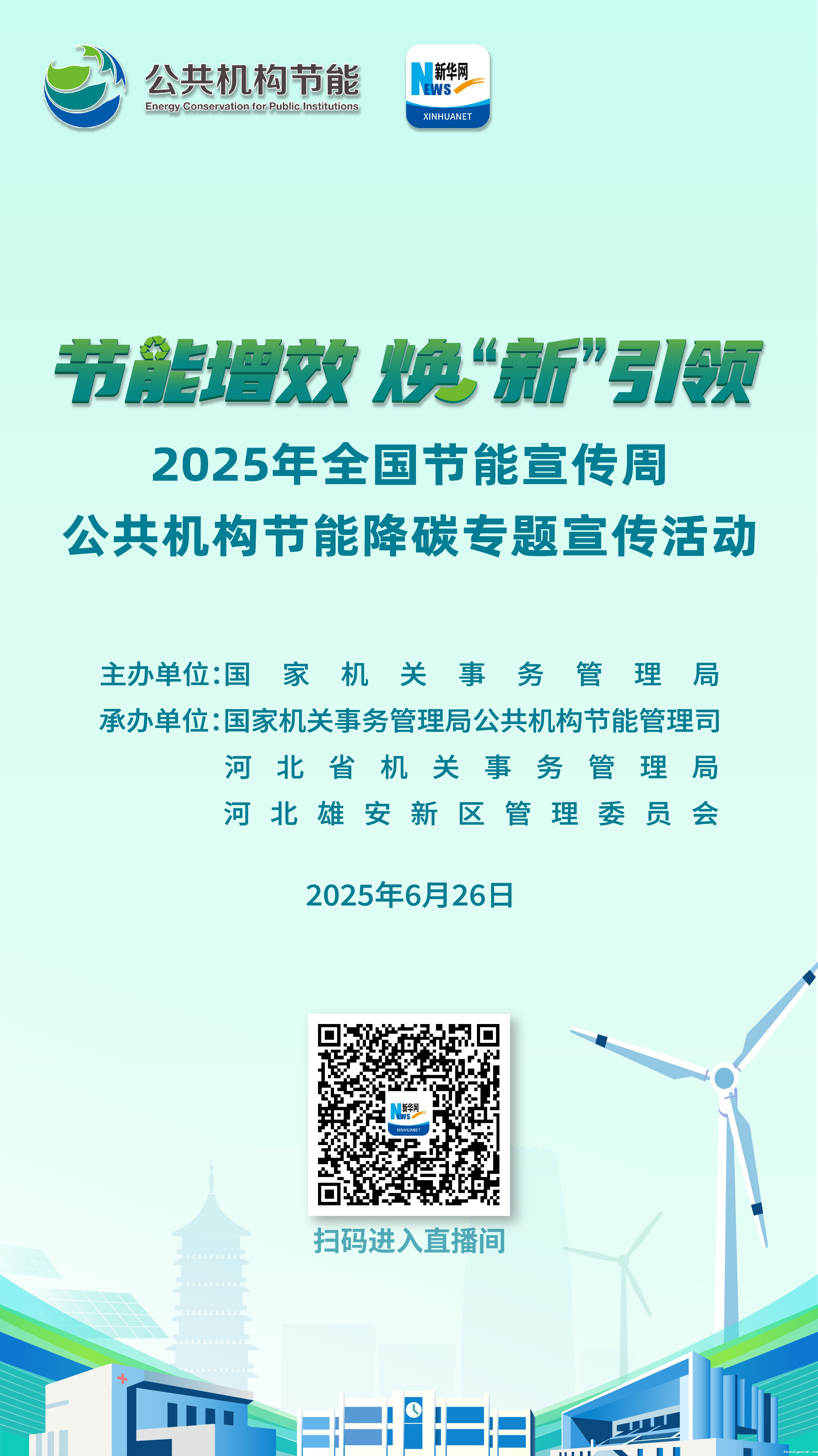 按照《国管局办公室关于开展2025年全国节能宣传周公共机构节能降碳系列宣传活动的通知》(国管办发〔2025〕16号)安排,6月26日,国管局将举办2025年全国节能宣传周公共机构节能降碳专题宣传活动,并发布公益宣传短片。现发布线上指南,请全国各级公共机构组织干部职工积极参与。