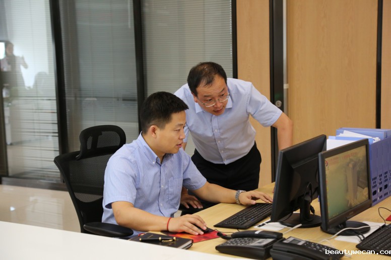 (西咸新区事业单位登记管理局负责人车飞与政务服务中心负责人李玉龙沟通网上办事流程)